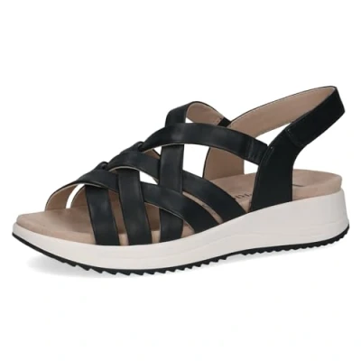CAPRICE Women' 9 28708 42 Flat Sandal, Navy Pat Glam, 7.5 UK