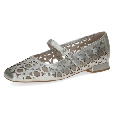 CAPRICE Women's Ballet Flats in Leather, Metallic (Platin.MET.CO), 5 UK