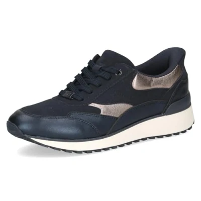 CAPRICE Women's Leather Sneakers, Blue (Navy PERL COM), 3.5 UK