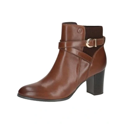 CAPRICE Womens Leather Buckle Heel Ankle Boots, Cognac Nappa, 8.5 UK
