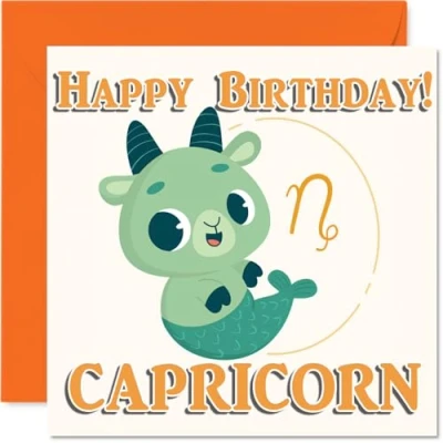 MAKE HIM SMILE WITH THIS UNIQUE BIRTHDAY CARD: This exceptional quality Male birthday card for him shows the design 'Capricorn'. If you are looking for a unique birthday card Boys for him, then then this happy birthday card is bound to make him smile. Not just a birthday card for Men this could also be a birthday gifts for Cousin, Nephew, Husband, Neighbour, Colleague, Dad, Son or Friend. WHAT DO YOU GET: The card is printed on one side and BLANK ON THE INSIDE to allow you to write your very own message. The unique fun design is printed on a specially sourced and environmentally responsible board. At 360 microns thick the natural white one-sided gloss board has a quality look and feel. Supplied with a coloured gummed envelope to complement the design and ready to be sealed and sent in the post. Great Cousin birthday cards, Boys birthday card, Nephew birthday card. NO INK SMUDGES: There is nothing worse than writing inside a card to find that the shiny surface makes the ink smudge. This is why we use a high quality one sided coated board. The uncoated side will absorb more of the ink from your pen to make smudging a thing of the past. Birthday cards for Husband, Birthday card for Neighbour, Birthday cards for Colleague. SIZES: Greeting Card = 145mm x 145mm, Envelope = 155mm x 155mm, Card Thickness = 360 micron. Dad birthday card, birthday cards for Son, unique birthday cards for Friend, Boys birthday card Cousin, Nephew birthday card. MADE AND QUALITY CHECKED IN THE UK: We print and manufacture all our products right here in the UK so you can be sure of a fast turnaround and a product that is expertly made. Using environmentally responsible premium board our card is conscious of the responsible management of the world's forests - perfect birthday cards for Men, fun birthday cards for her, Nephew birthday cards, male birthday cards.