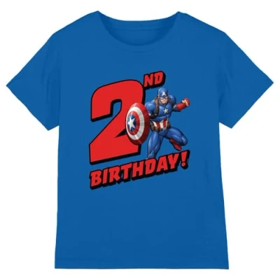 CAPTAIN AMERICA Birthday 2 Unisex Kids T Shirt, Royal, 9 10 Years