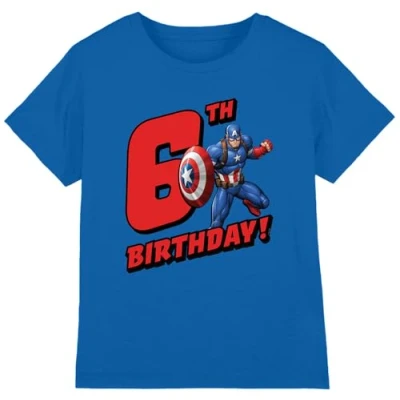 CAPTAIN AMERICA Birthday 6 Unisex Kids T Shirt, Royal, 5 Years