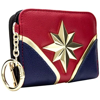Captain Marvel Carol Danvers Cosmic Kree Suit Style Purse Clutch Coin Pocket & Card Holder, Red