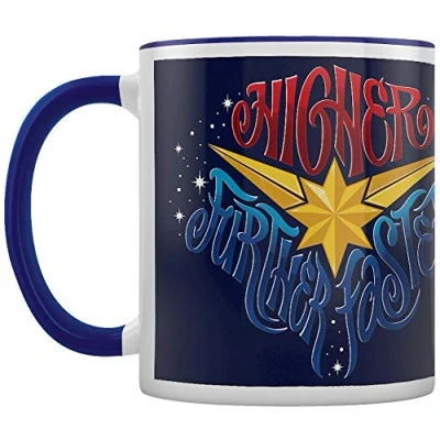 Amazing Captain Marvel Higher themed coloured inner mug Perfect gift for Captain Marvel Higher fans. Captain Marvel Higher - Higher further faster - coloured inner mug