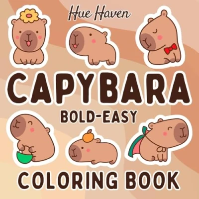Capybara: Bold and Easy Coloring Book for Kids Adults, Simple Stress Relief Cute Capybaras Designs.