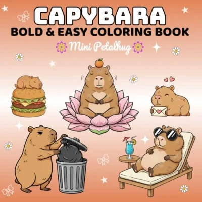 Capybara Bold and Easy Coloring Book: kawaii Book with Simple Big Designs for Relaxation, Cute Gift Kids Adults