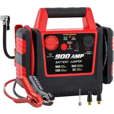 Starting dead battery - With this 900A 12V lead-acid jump starter, it can jump start a dead battery within a few seconds in the case of a 5.0L gasoline or 5.0L diesel engine. It can always meet the challenge of starting a car battery in an environment (-4 ° F~149 ° F). Jump starter with tire inflator - this tire inflator max pressure 150psi (max experimental data), inflates standard vehicle tire in 3 minutes (195/65/R15, 0-35psi), It includes an extension air hose and 3 different adapters to inflate cars, motorcycle, bikes, balls, and other inflatables. Portable Multi-Function Power Station - Jump starter battery pack is also a versatile power bank with USB(5V/2.1A) ports and a 12V DC (11A 132W), Recharge smartphones, tablets and more. It comes with AC and DC power adapters and can be charged at home or the vehicles. Easy to use - without worrying about connection errors, use flameproof technology and reverse polarity protection, advanced jump start, safe and stable lead-acid battery to provide strong current, ensuring stable car startup. For optimal performance, it should be charged every 60 days when not in use. Once in use, please charge the device as soon as possible. What you get - car jump starter with tire inflator, high-quality battery clip, 110V AC charger, 12V DC charger, extenxion air hose, 3 adapters, user guide. If there are any issues, please contact us, we will help you resolve it immediately.