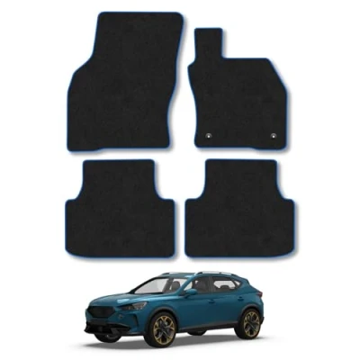 Car Mats Compatible with Cupra Formentor (2020 ) Tailored Fit Blue Carpet Floor Set Accessory Custom 4 Pieces Anti Slip Backing & Binding Trim Edge