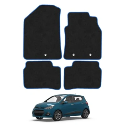 Car Mats Compatible with Hyundai i10 (2014 2020) Tailored Fit Blue Trimmed Carpet Floor Mat Set Accessory Black Custom Fitted 4 Pieces Clips Anti Slip Backing & Trim Edging
