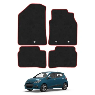 Car Mats Compatible with Hyundai i10 (2014 2020) Tailored Fit Red Trimmed Carpet Floor Mat Set Accessory Black Custom Fitted 4 Pieces Clips Anti Slip Backing & Trim Edging