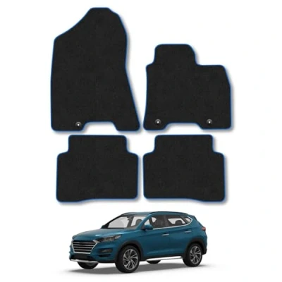 Car mats for the Hyundai Tucson 2015-2021 (Models with press stud floor fixing) ULTIMATE PROTECTION: Stop mud, sand, grease, water, dog hairs and just about anything else the day throws at you from causing lasting damage to your interior. These floor mats not only protect from spills, but they also protect the value of your vehicle while keeping your vehicle crisp and clean. An anti-slip backing also provides a secure and comfortable fit SLEEK & PROTECTIVE DESIGN: Our floor mats come standard with a newly developed 550gsm automotive grade carpet that not only extends the life of your floor mats but optimises comfort for those longer trips. This combined with our signature polypropolyne binding gives your vehicle a sleek premium finish and you peace of mind knowing you are getting a quality durable product. These mats are also easy to clean, simply remove, shake and hoover if needed and you're back on the road PERFECTLY TAILORED TO YOUR VEHICLE: Designed with 3D scanning tech and manufactured with a German Engineered CNC cutter for a precise fit around every curve and panel in your vehicle floor. Each mat lies completely flat and features model specific clips to match your floor fixings (where applicable) to stop movement and keep your mats secured in place MADE IN THE UK: Tailor made here in the UK by our dedicated team, all of our floor mats are hand finished and carefully inspected, assuring quality and providing lasting protection. They are also made under ISO9001 standards for OE level quality at a fraction of the main dealer price. We use state of the art software that minimises waste when manufacturing our mats, reducing our environmental impact and improving value for you, our customer! EXACT FIT: Precisely tailored to the exact dimensions and contours of your Hyundai Tucson (2015-2021) Only suitable for models with Press Stud floor fixings. Please refer to the compatibility section of the listing for more specific model details and to find out if these mats fit your car