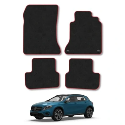 Car mats for the Mercedes GLA 2014-2020 ULTIMATE PROTECTION: Stop mud, sand, grease, water, dog hairs and just about anything else the day throws at you from causing lasting damage to your interior. These floor mats not only protect from spills, but they also protect the value of your vehicle while keeping your vehicle crisp and clean. An anti-slip backing also provides a secure and comfortable fit SLEEK & PROTECTIVE DESIGN: Our floor mats come standard with a newly developed 550gsm automotive grade carpet that not only extends the life of your floor mats but optimises comfort for those longer trips. This combined with our signature polypropolyne binding gives your vehicle a sleek premium finish and you peace of mind knowing you are getting a quality durable product. These mats are also easy to clean, simply remove, shake and hoover if needed and you're back on the road PERFECTLY TAILORED TO YOUR VEHICLE: Designed with 3D scanning tech and manufactured with a German Engineered CNC cutter for a precise fit around every curve and panel in your vehicle floor. Each mat lies completely flat and features model specific clips to match your floor fixings (where applicable) to stop movement and keep your mats secured in place MADE IN THE UK: Tailor made here in the UK by our dedicated team, all of our floor mats are hand finished and carefully inspected, assuring quality and providing lasting protection. They are also made under ISO9001 standards for OE level quality at a fraction of the main dealer price. We use state of the art software that minimises waste when manufacturing our mats, reducing our environmental impact and improving value for you, our customer! EXACT FIT: Precisely tailored to the exact dimensions and contours of your Mercedes GLA (2014-2020) [X156]. Please refer to the compatibility section of the listing for more specific model details and to find out if these mats fit your car