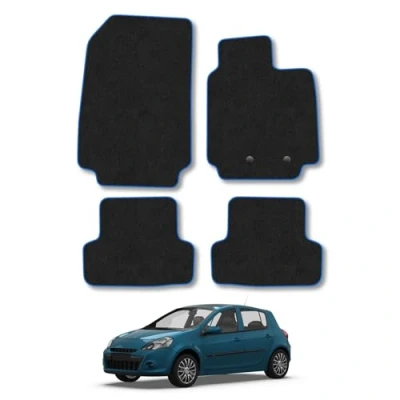 PERFECTLY TAILORED TO YOUR VEHICLE: Designed with 3D scanning tech and manufactured with a German Engineered CNC cutter for a precise fit around every curve and panel in your vehicle floor. Each mat lies completely flat and features model specific clips to match your floor fixings (where applicable) to stop movement and keep your mats secured in place ULTIMATE PROTECTION: Stop mud, sand, grease, water, dog hairs and just about anything else the day throws at you from causing lasting damage to your interior. These floor mats not only protect from spills, but they also protect the value of your vehicle while keeping your vehicle crisp and clean. An anti-slip backing also provides a secure and comfortable fit SLEEK & PROTECTIVE DESIGN: Our floor mats come standard with a newly developed 550gsm automotive grade carpet that not only extends the life of your floor mats but optimises comfort for those longer trips. This combined with our signature polypropolyne binding gives your vehicle a sleek premium finish and you peace of mind knowing you are getting a quality durable product. These mats are also easy to clean, simply remove, shake and hoover if needed and you're back on the road MADE IN THE UK: Tailor made here in the UK by our dedicated team, all of our floor mats are hand finished and carefully inspected, assuring quality and providing lasting protection. They are also made under ISO9001 standards for OE level quality at a fraction of the main dealer price. We use state of the art software that minimises waste when manufacturing our mats, reducing our environmental impact and improving value for you, our customer! EXACT FIT: Precisely tailored to the exact dimensions and contours of your Renault Clio (2006-2013). Please refer to the compatibility section of the listing for more specific model details and to find out if these mats fit your car