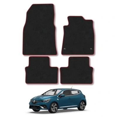 Car Mats Compatible with Renault Clio (2019 ) Tailored Fit Red Carpet Floor Set Accessory Custom 4 Pieces Anti Slip Backing & Binding Trim Edge