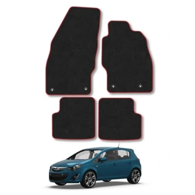 Car Mats Compatible with Vauxhall Corsa D & E (2006 2019) Tailored Fit Red Trimmed Carpet Floor Mat Set Accessory Black Custom Fitted 4 Pieces Clips Anti Slip Backing Trim Edging