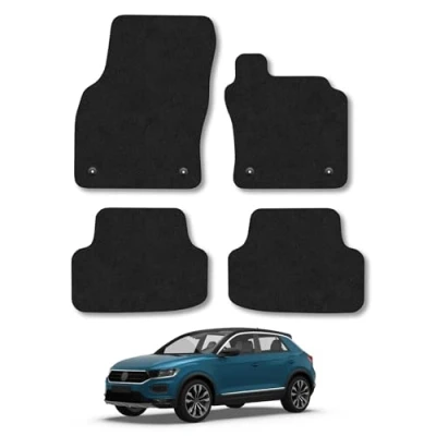 ULTIMATE PROTECTION: Stop mud, sand, grease, water, dog hairs and just about anything else the day throws at you from causing lasting damage to your interior. These floor mats not only protect from spills, but they also protect the value of your vehicle while keeping your vehicle crisp and clean. An anti-slip backing also provides a secure and comfortable fit SLEEK & PROTECTIVE DESIGN: Our floor mats come standard with a newly developed 550gsm automotive grade carpet that not only extends the life of your floor mats but optimises comfort for those longer trips. This combined with our signature polypropolyne binding gives your vehicle a sleek premium finish and you peace of mind knowing you are getting a quality durable product. These mats are also easy to clean, simply remove, shake and hoover if needed and you're back on the road PERFECTLY TAILORED TO YOUR VEHICLE: Designed with 3D scanning tech and manufactured with a German Engineered CNC cutter for a precise fit around every curve and panel in your vehicle floor. Each mat lies completely flat and features model specific clips to match your floor fixings (where applicable) to stop movement and keep your mats secured in place MADE IN THE UK: Tailor made here in the UK by our dedicated team, all of our floor mats are hand finished and carefully inspected, assuring quality and providing lasting protection. They are also made under ISO9001 standards for OE level quality at a fraction of the main dealer price. We use state of the art software that minimises waste when manufacturing our mats, reducing our environmental impact and improving value for you, our customer! EXACT FIT: Precisely tailored to the exact dimensions and contours of your VW T-Roc (2017+). Please refer to the compatibility section of the listing for more specific model details and to find out if these mats fit your car