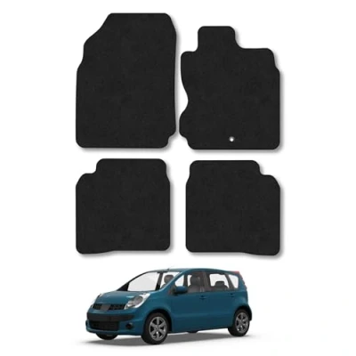 PERFECTLY TAILORED TO YOUR VEHICLE: Designed with 3D scanning tech and manufactured with a German Engineered CNC cutter for a precise fit around every curve and panel in your vehicle floor. Each mat lies completely flat and features model specific clips to match your floor fixings (where applicable) to stop movement and keep your mats secured in place ULTIMATE PROTECTION: Stop mud, sand, grease, water, dog hairs and just about anything else the day throws at you from causing lasting damage to your interior. These floor mats not only protect from spills, but they also protect the value of your vehicle while keeping your vehicle crisp and clean. An anti-slip backing also provides a secure and comfortable fit SLEEK & PROTECTIVE DESIGN: Our floor mats come standard with a newly developed 550gsm automotive grade carpet that not only extends the life of your floor mats but optimises comfort for those longer trips. This combined with our signature polypropolyne binding gives your vehicle a sleek premium finish and you peace of mind knowing you are getting a quality durable product. These mats are also easy to clean, simply remove, shake and hoover if needed and you're back on the road MADE IN THE UK: Tailor made here in the UK by our dedicated team, all of our floor mats are hand finished and carefully inspected, assuring quality and providing lasting protection. They are also made under ISO9001 standards for OE level quality at a fraction of the main dealer price. We use state of the art software that minimises waste when manufacturing our mats, reducing our environmental impact and improving value for you, our customer! EXACT FIT: Precisely tailored to the exact dimensions and contours of your Nissan Note (2006-2013). Please refer to the compatibility section of the listing for more specific model details and to find out if these mats fit your car