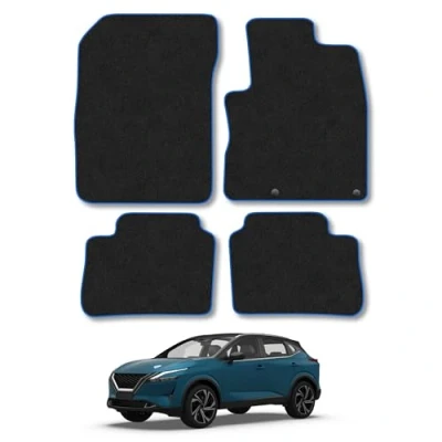 Car Mats for Nissan Qashqai e Power 2022 Onwards Tailored Fit Carpet Floor Mat Set Accessory Blue Custom Fitted 4 Pieces with Clips Anti Slip Backing & Trim Edging