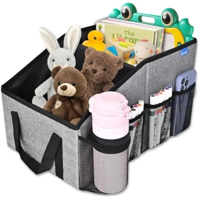 【Car seat storage box】 It is suitable for storing object you use the most in the car, such as documents, sunglasses, folding umbrella, drinks, children's books toys, etc. to keep the environment in the car tidy. Extra large capacity provide more storage space. 【Multiple usage scenarios】 The Smof car storage box can be used not only in the car, but also in the office for storing office supplies, or in the bedroom, baby room for storing clothes, tissues, diapers, baby supplies, books and other items. 【More pockets, more storage options】 There are 6 pockets on both sides of the car storage box, which can be used to store notebook, pens, children's books, snacks, cards and other small items, There is a large zippered pocket on the front side, which can be used to hold tissue boxes or other items. 【High-quality fabrics and stable fram】 High-quality Oxford cloth material, dust-proof and dirt-proof. The reinforced frame makes the storage box stronger and less deformable. The sturdy and widened handle makes it easier to lift and does not feel hand pain. 【Fixed with car seat】 In order to avoid the problem of the storage box falling when the vehicle is driving, we recommend that you fix the storage box on the car seat. Please pass the safety belt through the two belts at the back of the storage box and fix the safety belt as usual.