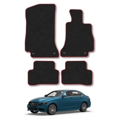 Car mats for the Mercedes C-Class Saloon / Estate 2014-2021 ULTIMATE PROTECTION: Stop mud, sand, grease, water, dog hairs and just about anything else the day throws at you from causing lasting damage to your interior. These floor mats not only protect from spills, but they also protect the value of your vehicle while keeping your vehicle crisp and clean. An anti-slip backing also provides a secure and comfortable fit SLEEK & PROTECTIVE DESIGN: Our floor mats come standard with a newly developed 550gsm automotive grade carpet that not only extends the life of your floor mats but optimises comfort for those longer trips. This combined with our signature polypropolyne binding gives your vehicle a sleek premium finish and you peace of mind knowing you are getting a quality durable product. These mats are also easy to clean, simply remove, shake and hoover if needed and you're back on the road PERFECTLY TAILORED TO YOUR VEHICLE: Designed with 3D scanning tech and manufactured with a German Engineered CNC cutter for a precise fit around every curve and panel in your vehicle floor. Each mat lies completely flat and features model specific clips to match your floor fixings (where applicable) to stop movement and keep your mats secured in place MADE IN THE UK: Tailor made here in the UK by our dedicated team, all of our floor mats are hand finished and carefully inspected, assuring quality and providing lasting protection. They are also made under ISO9001 standards for OE level quality at a fraction of the main dealer price. We use state of the art software that minimises waste when manufacturing our mats, reducing our environmental impact and improving value for you, our customer! EXACT FIT: Precisely tailored to the exact dimensions and contours of your Mercedes C-Class (2014-2021) [W205/S205] [Saloon; Estate]. Please refer to the compatibility section of the listing for more specific model details and to find out if these mats fit your car
