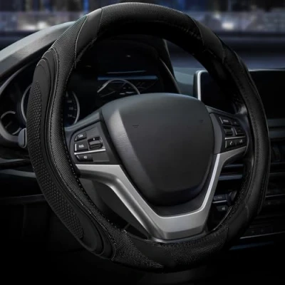 Car Steering Wheel Cover Sportage Leather Universal Size M 37 38cm /14.5 15inch, Anti slip, Breathable, Black