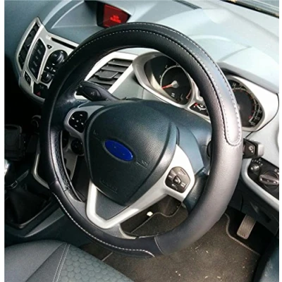 CAR STEERING WHEEL GLOVE COVER ALL BLACK COMFY EASY FIT + Protection