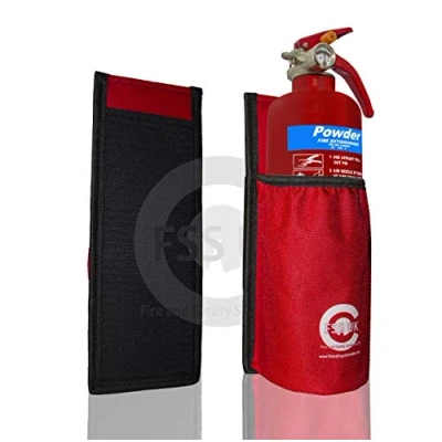 CAR Van Taxi FIRE Extinguisher. Requires NO Screws Brackets Hooks. 1 KG ABC Dry Extinguisher with Universal Holder Pouch Heavy Duty Sticky Back.