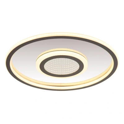 The ceiling lamp METAL GREY impresses with its modern design and fascinating 3D effect. This round ceiling light has a mirror inside, which in combination with the LEDs creates a unique 3D effect. The body made of grey, matt metal and stainless steel with a mirrored surface gives the lamp an elegant and timeless look. The shade made of grey, matt aluminium, opal plastic and mirrored acrylic rounds off the stylish design. With a diameter of 432 mm and a warm white light of 3000 K, the luminaire creates a pleasant atmosphere in any room. The ceiling light offers a practical memory function and three lighting levels: all LEDs together, only the outer ring or only the inner ring. These versatile settings allow you to adjust the lighting perfectly to your needs. The METAL GREY ceiling lamp is the ideal choice for modern living spaces that require both functionality and impressive design. Product features: Ceiling light metal grey matt, stainless steel mirrored, aluminium grey matt, plastic