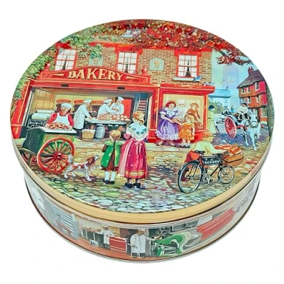 Treat your taste buds to a delightful experience with Salted Caramel Cookies by Jacobsens of Denmark. Each bite of these crunchy cookies is filled with the irresistible flavor of caramel and sprinkled with sea salt for a perfect salty-sweet combination. Presented in a charming Bakery Shop Art Tin, this 454g of cookie goodness is ideal for sharing with friends and family. A delicious treat will surely become a favorite for cookie lovers everywhere. Perfect for gifting or enjoying yourself. Made in Denmark......Enjoyed all over the world! Tin dimensions: 190mm diameter by 65mm height Net Weight: 454g (16oz)