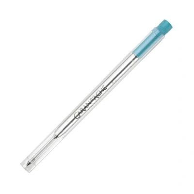 Powerful Goliath ballpoint pen refill from the brand. Caran d'Ache Suitable for all 849 ballpoint pens from Caran d'Ache The strong lead has a huge ink reservoir and allows you to write a manuscript over 400 to 600 A4 pages The colour of the lead is turquoise and has a line width M The ballpoint pen refill has a metal housing, a length of 12.3 cm and a diameter of 0.9 cm