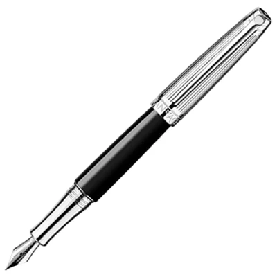 Body and cap made of brass Covered with a deep black lacquer Presented in a Caran d'Ache case Nib in rhodium-coated, 18-carat gold. Nibs available in four writing widths Equipped with an ink pump. Can be refilled with all the small Chromatics cartridges