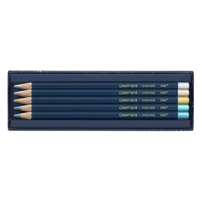 Caran d'Ache Léman CC1284.024 Cosmic Blue Metallic Coloured Pencils Set of 10 Gift with Premium Cardboard