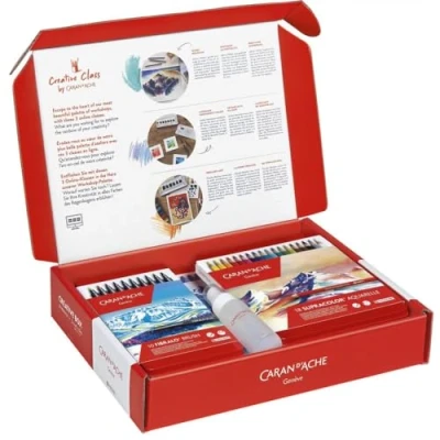 The Creative Box from Caran d'Ache is an outstanding creative gift that combines everything you need for a wide range of creative expressions with 30 wax pastels, 18 coloured pencils, 10 felt tip pens, 8 gouache tablets and 5 accessories. This comprehensive creative box appeals to both hobby artists and curious creatives and provides the ideal basis for unleashing your own imagination and realise artistic projects In addition to the extensive range of high-quality color materials, the Creative Box also provides access to three exclusive online creative courses led by experienced artists. The courses focus on the creative use of Fibralo Brush, Supracolor Aquarelle, Neocolor and Gouache Studio, providing participants with the opportunity to improve their skills and learn new techniques to enrich their artistic practice Available in three languages and led by artists with different styles and subject areas, the courses provide an inspiring and interactive learning experience where participants can discover the diverse applications of the different materials and bring creative projects to life on paper The Creative Box is suitable for artists of any level of experience, be it for beginners starting their artistic journey or for experienced artists looking for new inspirational challenges to develop their skills and expand their creative vision With a carefully compiled selection of high-quality materials and a comprehensive range of online courses, Caran d'Ache Creative Box is the perfect choice for anyone who wants to ignite their artistic passion and expand their creative boundaries
