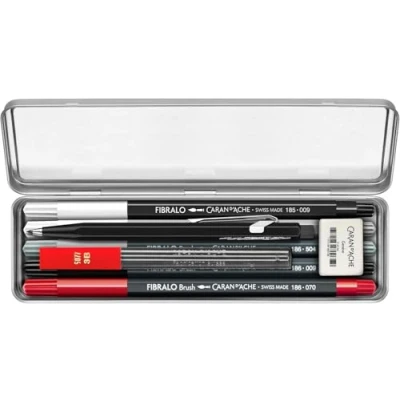 Caran d'Ache RYLSEE 3000.323 Lettering Set + 1 Online Creative Course in Grey Metal Case