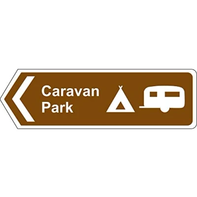 Caravan camping motorhome park left directional sign 3mm Aluminium sign 600mm x 140mm Digitally printed and laminated for extra durability 10mm Radius rounded corners, no sharp edges, Manufacturer: KPCM Display ltd