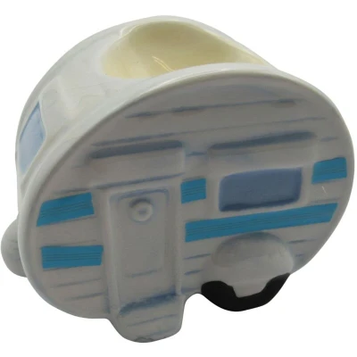 Ceramic Caravan Egg CupThere's not many better things to eat for breakfast than a nice soft boiled egg with your toast cut into soldiers ready for dipping into a nice runny yolk, well how about letting your boiled egg sit in this fun novelty egg cup on your breakfast table to help you start your day happy. Although this beautifully designed egg cup is a really useful item it would also look great displayed on a shelf or on your kitchen windowsill.This fun and quirky item has been styled to look like a vintage caravan and comes with a glossy white and blue glaze that is very easy to clean. The egg sits in the recess on the top of the egg cup.This item would make a brilliant gift for any friend or family member, or maybe get one for yourself to help brighten up your breakfast table.SpecificationsHeight: 65MMLength: 90MMWidth: 60MMRecess Diameter: 40MMRecess Depth: 20MMProduct Code: SFZZPPCEGWeight: 0.19kg