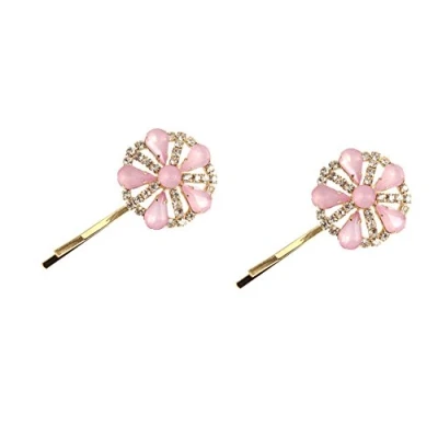 Caravan Pink Rose Design of Swarovski Rhinestone Bobby Pin Pair