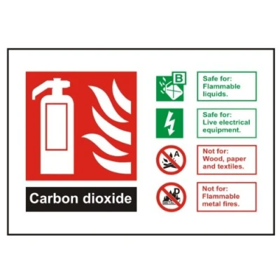 Carbon Dioxide Fire Extinguisher ID Sign 150mm x 100mm Material: STAUFEN 1mm High Gloss Rigid Plastic Which Allows Flush Fittings To Walls Manufactured By UK Safety Store With A 5 Year Warranty Screen Printed Direct To The Material For A Better Finish, Manufacturer: UK Safety Store