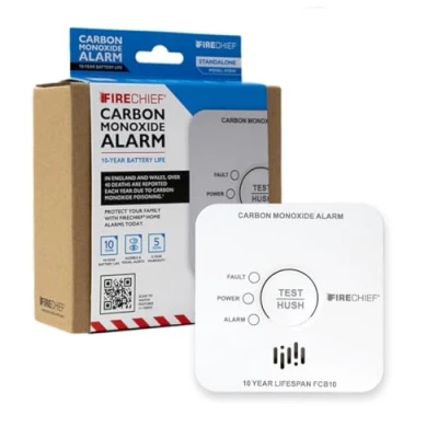 Carbon Monoxide (CO) Alarm 10 Year Sealed Battery Gas For Rooms With Fuel Burning Appliance eg Boiler, Heater & Cooker, Lofts Garages Firechief FCB10 Model