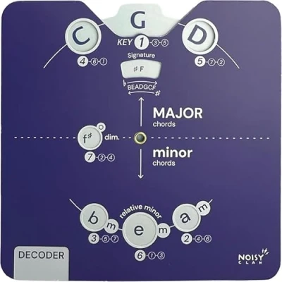 Unlock Songwriting Brilliance: Gain invaluable insights into chord selection and progression for captivating compositions. From theory basics up to song writing, this ebook download and tool will guide you through. The ultimate songwriting tool. Efficient Learning, Universal Power: Turbocharge your learning curve with cheats for chord structures, seamlessly expanding music theory. Universally applicable across instruments. Play piano, guitar, ukulele, bass, violin, trumpet, cello, keyboard, mandolin, guitarists, any instrument! Visual Finesse For Impact: Command attention with a visually stunning and unique wheel design. Simplified design for Keys, Chords, Notes, Majors, Minors, Diminished - No more confusion! Recommended for students all the way to teachers. Material Matters: Elevate your skills with a durable card tool for an enduring learning experience. Made from high quality FCS card stock, this Decoder Circle of Fifths Essential Edition gives you, well...the essentials! Musical Ally: Keep the compact Circle of Fifths tool in your gig bag for instant chord inspiration and progression guidance during spontaneous jam sessions with friends. Elevate your performance effortlessly, adding a touch of musical finesse to every impromptu gathering. Play More, Learn More: With your Noisy Clan product, you’re not just buying gear — you’re invited to join a learning community. Every package includes access to step-by-step guides, free book downloads, printables, and access to a music community to help you play more. Back to School Music Supplies: Start the school year strong with music learning tools that make theory easier and practice more effective. Ideal for students, teachers, and homeschoolers looking to stay organized and ahead this term.