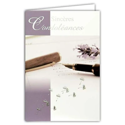 Card of Sympathy Grey Silver Shiny Fountain Pen Write a Word Excess Hen Party Purple Lavender Dandelion Seeds Made in France