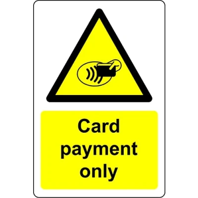 Card payment only shop sign Self adhesive sticker Digitally printed and laminated for extra durability Remove backing film and apply to dry, smooth, oil free surface.