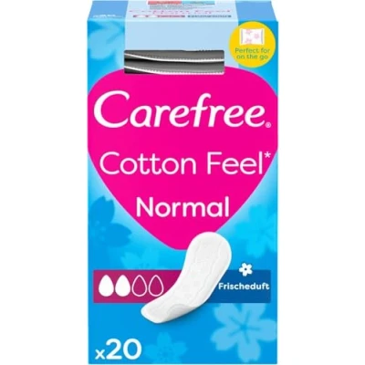 Daily protection: The Carefree Panty Liners are 100% air-breathable with fresh scent and contain cotton extract to provide the best protection and comfort every day, ensuring you feel fresh Air-flow liner: The cotton knicker liners feature a unique combination of 4 airflow layers that allow maximum breathability to keep you fresh and comfortable for longer throughout the day Soft cotton cover: The dermatologically-tested cotton cover of the Carefree discreet liners is soft and breathable and feels like cotton underwear, providing ultimate fresh protection Long-lasting freshness: Designed to deliver freshness and daily underwear protection with an eight-hour odour control system, you can just forget about the incontinence liners and feel the freshness Product details: Carefree Cotton Feel Fresh Scent Panty Liners (1x Pack of 20), breathable panty liners with cotton extract for fresh underwear protection and intimate hygiene