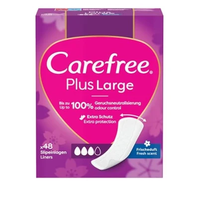 Carefree Plus Large Fresh, 48 pcs, Super Absorbent Instantly Block Moisture, up to 100% Odor Neutralization
