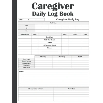 Caregiver Daily Log Book: Personal Home Aide Record Book, Work Template, Care Tracking, Medicine Reminder and Medical Journal for Patients Men Women