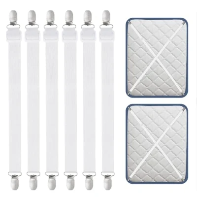 High-quality materials: our bed sheet clips are made of a sturdy chrome-plated metal clip and are in the plastic fastening system, which can protect the fabric from damage. Easy installation: no tools, just hold the mattress and attach the clip to the edge of the sheet. Adjustable bed sheet straps: Our bed sheet straps can be easily adjusted to the desired size, the adjustment range is 55 to 250 cm to meet your different needs. Multi-functional: Our bed sheet straps can be used to attach flat or embedded sheets and other duvet covers such as mattress toppers. Can be used to fix sheets, mattress protectors, ironing board covers, tablecloths, sofa covers, duvets and anything else you want to fix on a flat surface. Sleep in comfort: durable, easy to use. With our sheet clips, you have smooth and secure sheets so you can sleep comfortably.