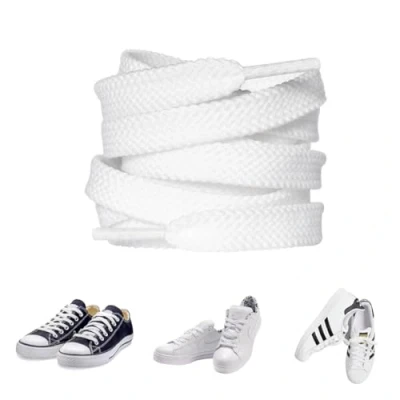Very tear-resistant: the flat shoe laces made of polyester, approx. 8 mm wide, 120 cm lengths, double layer weaving process is stronger, denser and more textured. Fashionable flat laces: a new, white colour and length of the premium laces gives your favourite trainers or canvas shoes a new look and gives your shoes much more individual character. 【Application】Flat white laces are suitable for women, men, teenagers, children, girls or boys who want to replace shoelaces. And these laces are perfect for sports shoes, board shoes, casual shoes, running shoes, canvas shoes, hiking shoes, roller skates. Easy to use: measure the length of your current laces in inches or cm so that you get the length for the new laces. Package includes: 2 pairs of 120 cm length, 8 mm wide flat laces package, colour with white.