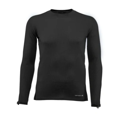 Carhartt Base Layer Men's Force Lightweight Stretch Grid Crewneck Top, Black, Medium