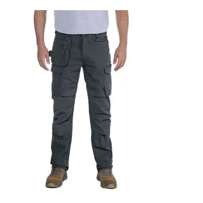 General description Durable, dependable, and heavy-duty, the Carhartt 103337 Steel Multi Pocket Pants in Shadow Grey are designed for hard work. These men's relaxed-fit multi-pocket tech pants are made of a midweight cotton blend, making them suitable for various tasks, from ditch digging to cable pulling. The design allows for more movement, sitting slightly below the waist, with a leg opening that fits over work boots. Technical specifications Weight: 8 oz/yd² - 271 gsm Material: 59% Cotton, 39% Polyester, 2% Elastane Stretch Ripstop Features: Rugged Flex® for ease of movement, Full Swing® for a greater range of motion Usage Ideal for heavy-duty work environments Multiple pockets for tool storage Double front accommodates knee pads Other information Kick panels are Cordura®-reinforced Includes Cordura®-reinforced front ledge pockets Two hanging tool pockets in self-fabric Right back utility pocket with free hanging bottom for ruler storage Right leg utility band Reinforced Cordura®